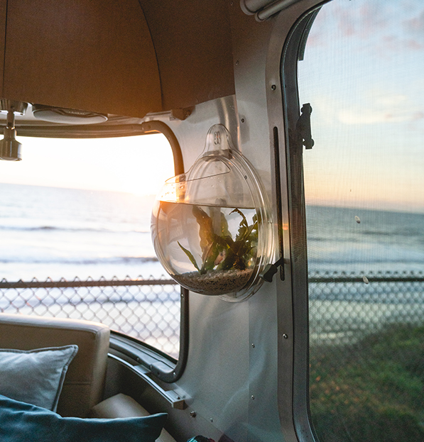 Why would someone want to have a fish (and a snail) traveling with them? Well for me, I actually accidentally won a fish at a fair during my travels and had to figure out a way to make it work in the Airstream, and I DID! I’ve always been obsessed with snails ever since I heard The Format song “Snails”. So of course I had to add a snail to my tank once I got it all sorted.
